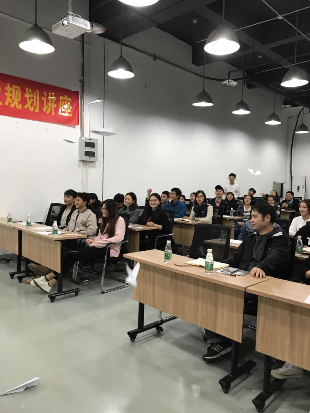 本次讲座的主要内容有:?大学是什么??大学应该干什么??学习我该如何规划?大学如何做好职业规划??等等一系列大学生常见的问题,王麒凯老师都替同学们一一解答。通过思维导图的方式引领同学们了解自己、发现自己和明确自己,从人生的价值到人生的目标最后确立到大学生活的目的,一步步为同学们找个每个人不同的发展方向以及实施方案,并且通过“折纸飞机”“随机领取”“小天使督促”等等风趣幽默的方式来鼓励督促同学们执行计划,做到真正的自律。