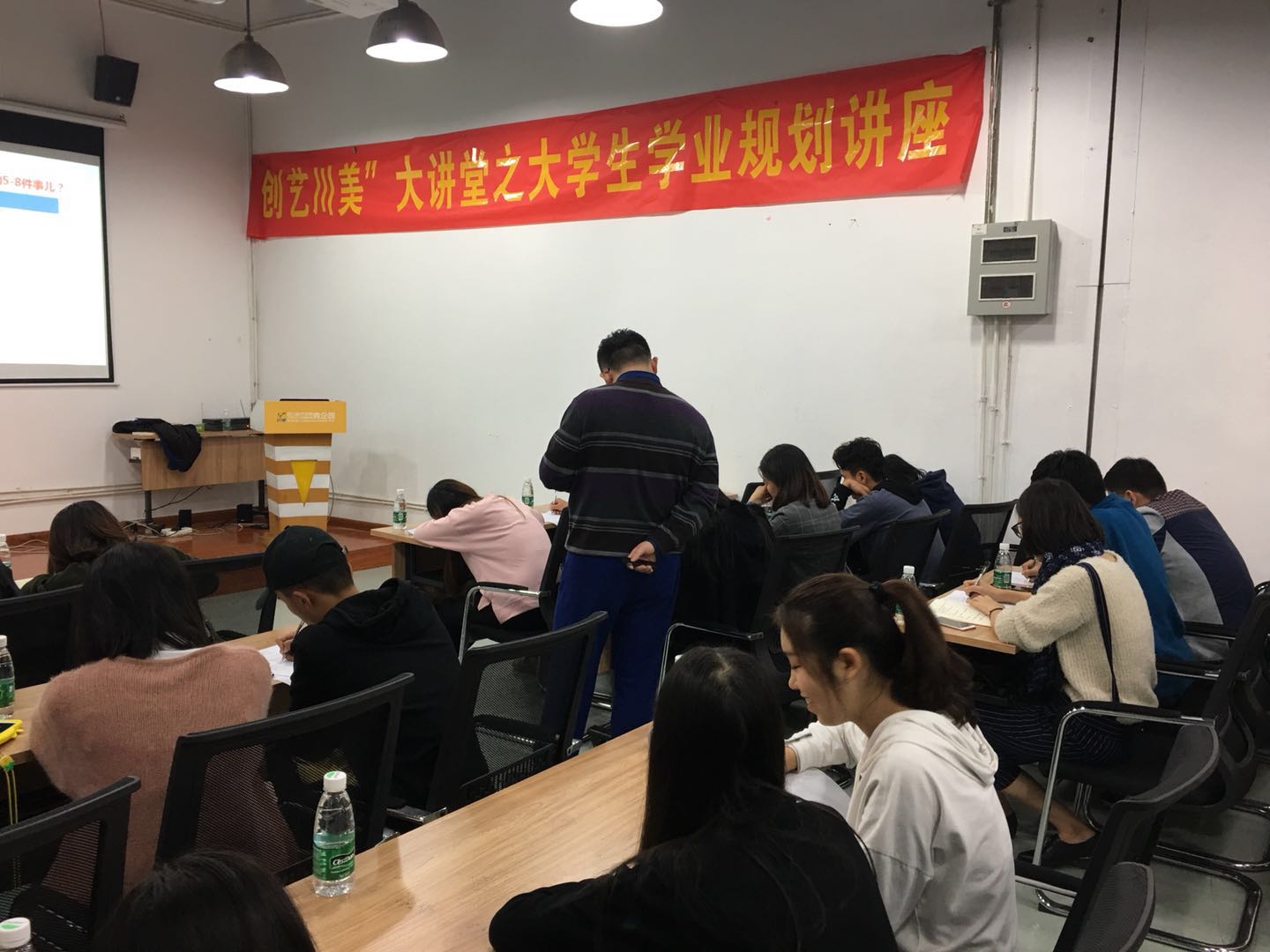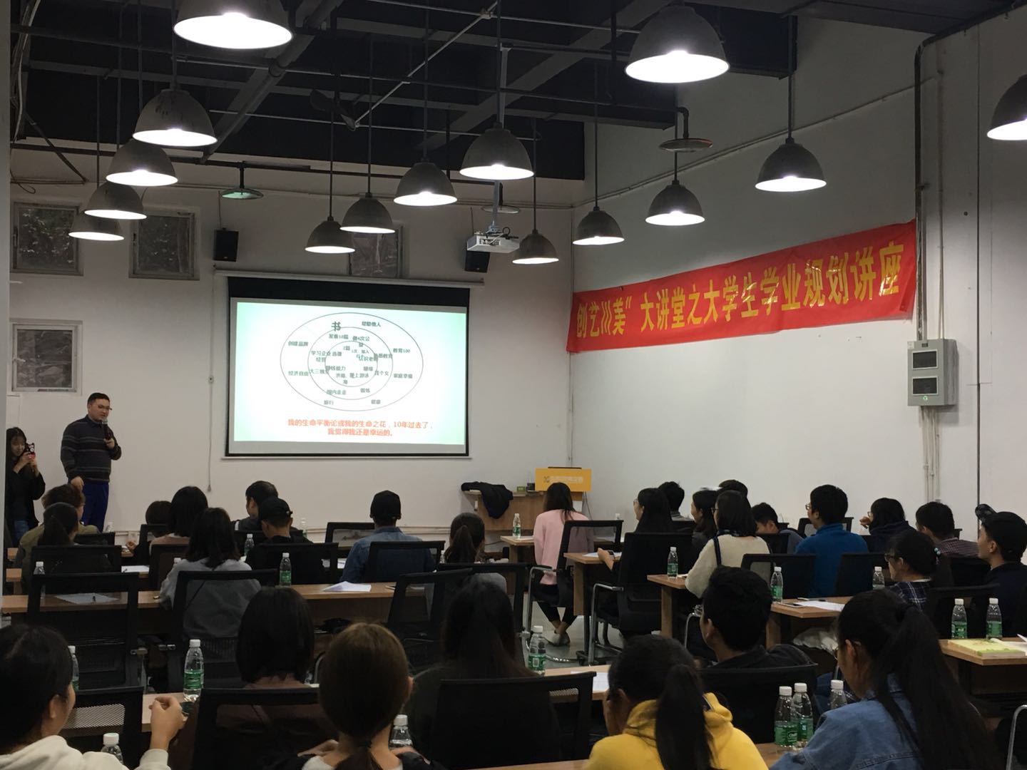 本次讲座的主要内容有:?大学是什么??大学应该干什么??学习我该如何规划?大学如何做好职业规划??等等一系列大学生常见的问题,王麒凯老师都替同学们一一解答。通过思维导图的方式引领同学们了解自己、发现自己和明确自己,从人生的价值到人生的目标最后确立到大学生活的目的,一步步为同学们找个每个人不同的发展方向以及实施方案,并且通过“折纸飞机”“随机领取”“小天使督促”等等风趣幽默的方式来鼓励督促同学们执行计划,做到真正的自律。